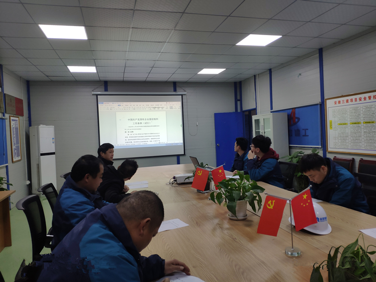 1月8日上午,安徽三建六、七、八、九、十公司党支部于香枫创意园22楼党员活动室开展“三个以案”警示教育,并集中组织党员职工学习《中国共产党国有企业基层组织工作条例(试行)》,共计30余人参加