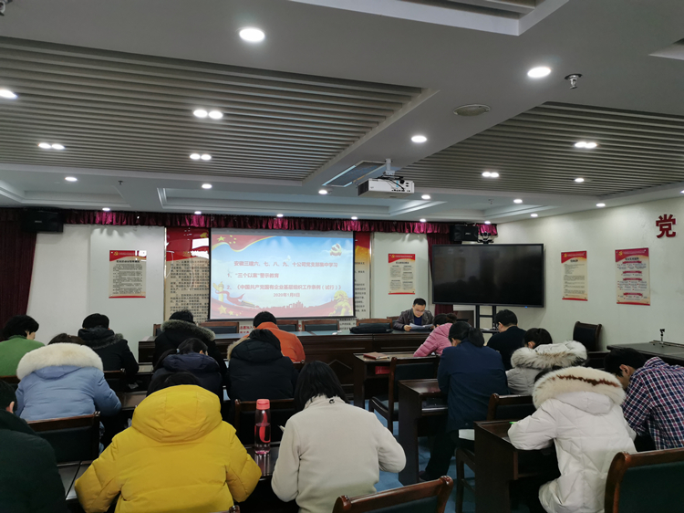 1月6日,基础公司党支部在党员活动室组织全体党员和职工学习《中国共产党国有企业基层组织工作条例》